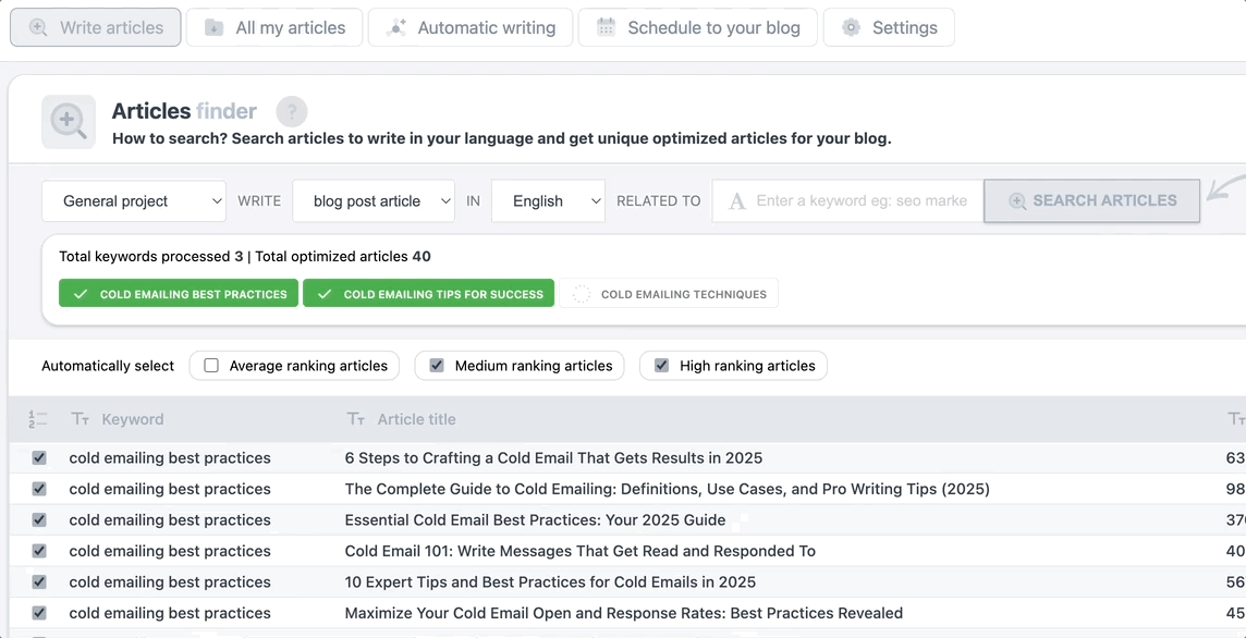 Générez plus de contenu de blog en moins de temps.- Produire plusieurs articles en masse